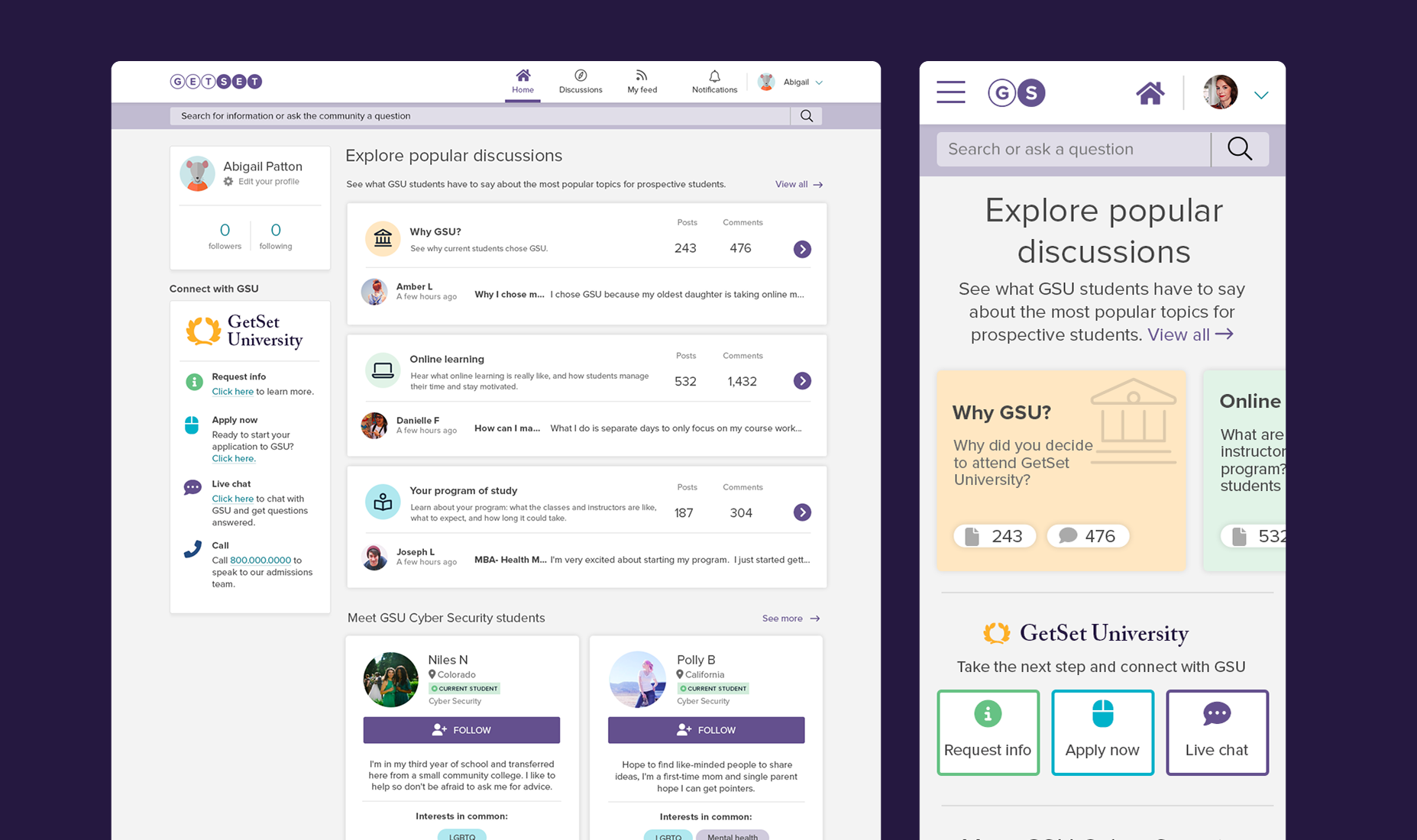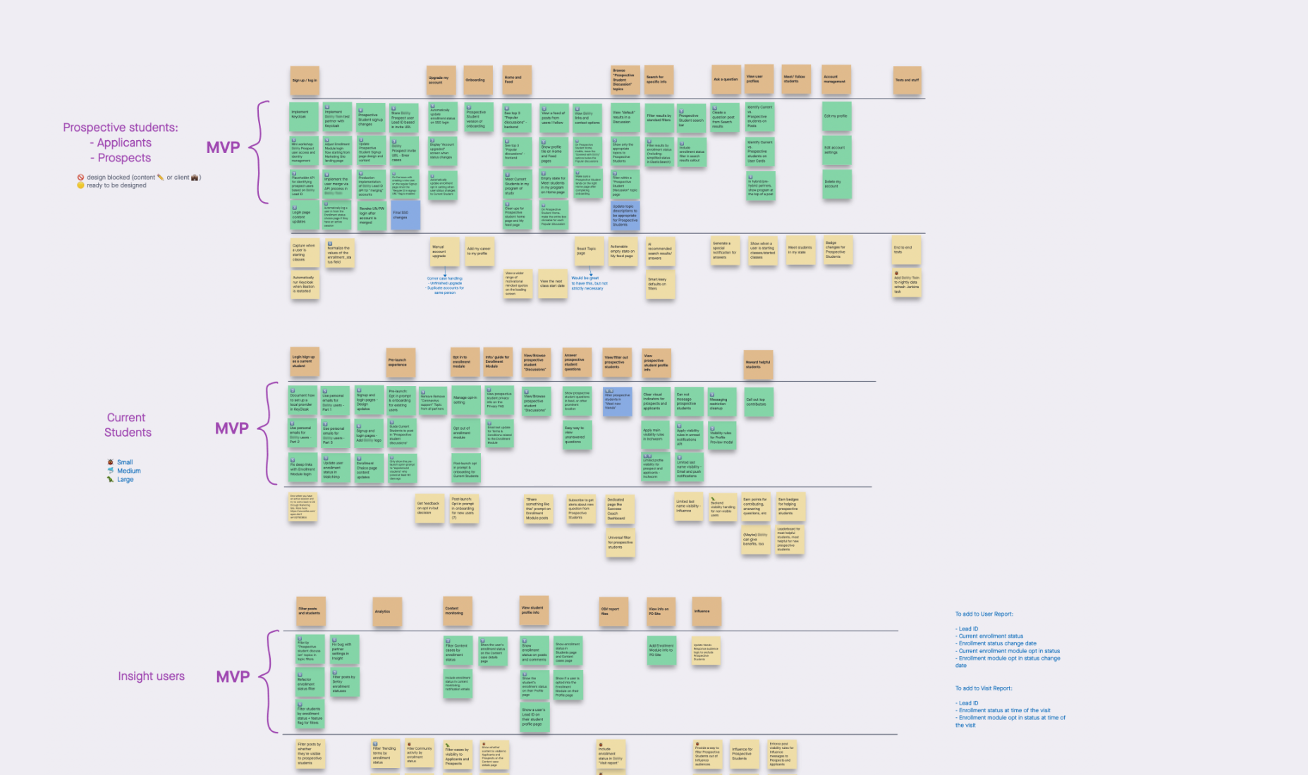 A client wanted to add prospects--students who have not yet decided to enroll--to their student community, a user type GetSet didn’t support at the time. Adding this feature meant a ton of research and data needed to be pulled before design could even begin, starting with an internal audit to identify potential problems and changes needed.