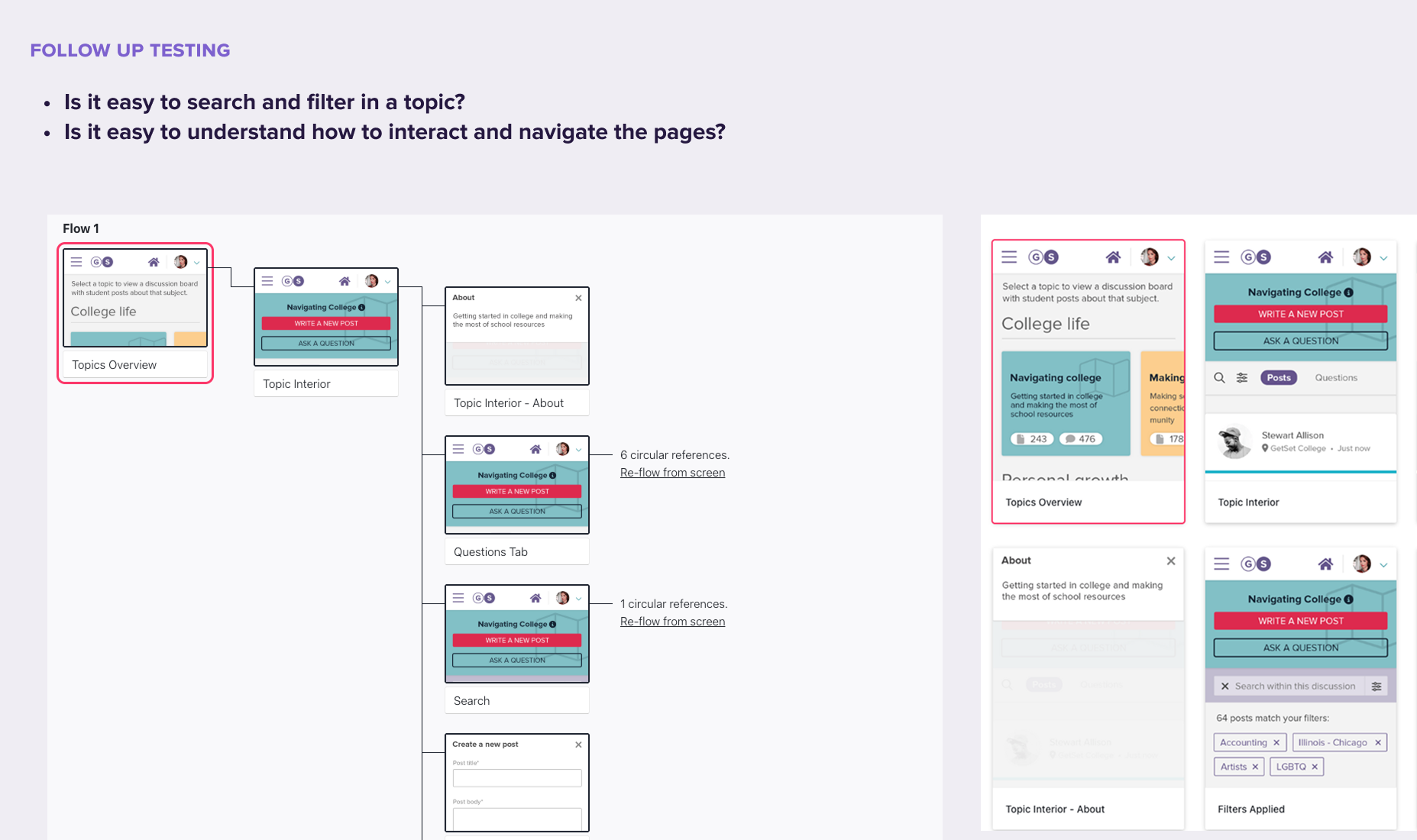 As part of the enrollment product, I recommended we redesign the UX (and visuals) for a key product component: topics. The data overwhelmingly showed prospective users were on mobile devices, and the redesigned experience was tailored to make navigation--and searching--as clear as possible. But as with any design, there’s only one true way to make sure you’ve hit the mark: user testing. Iconducted 1:1 student interviews to confirm we were on the right track.
